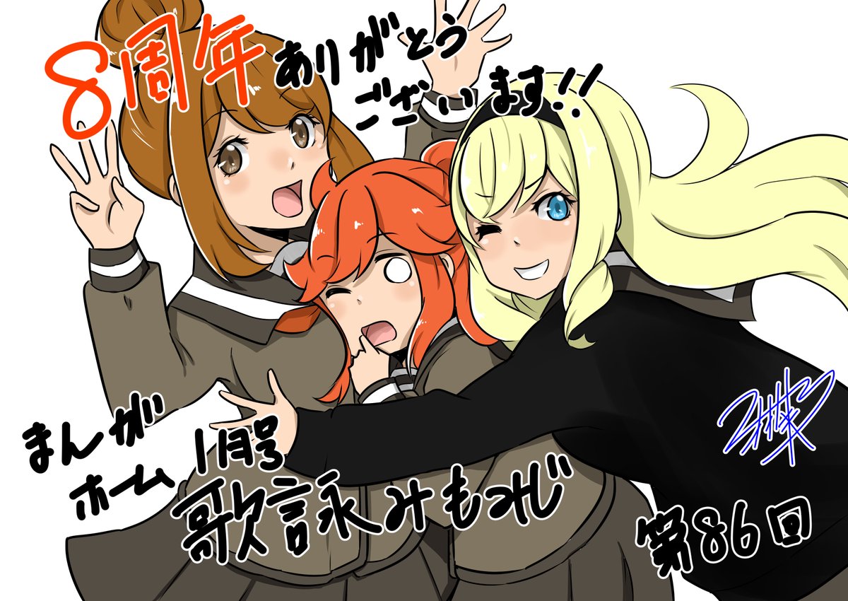 本日発売のまんがホーム1月号にて『歌詠みもみじ』86回目の掲載です。今回はマナーのお話。また、拙作も含め本日でオオトリの商業誌デビュー8周年となりました。今後も精進してまいりますので宜しくお願い致します! 周年記念として描けるだけレギュラーキャラを出しました。