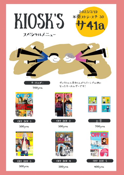 3月18日HARU COMIC CITY 31氷奏ストラースチ 30 東1 サ41aキオスクお品書きです! 詳細 pixiv.net/artworks/10612… キーホルダー動画 twitter.com/ototoi_oto/sta… さめさんの無配の小説とこはたゆうさんの無配のポストカードもあります!!あと謎のおみくじもあるかも? お気軽にお立ち寄りください!