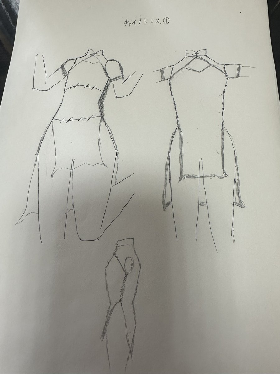 0 11 〜くまのチャイナドレスver.途中経過〜 デザイン1つ目 想像が捗らなくて作業が難航しておる #七八絵まの 23/03/04 16:08
