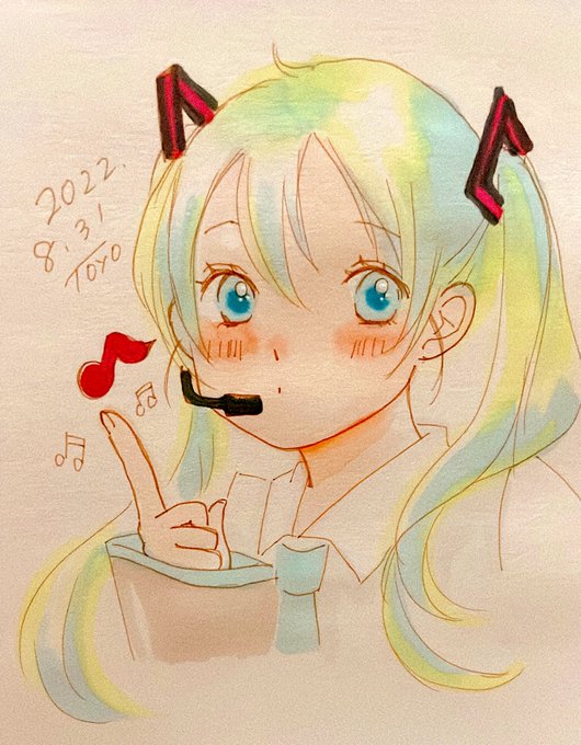 3 42 ミクちゃんお誕生日おめでとう🎉 一発描きで塗ったらめちゃくちゃ滲む紙だった… #絵描きさんと繋がりたい 22/08/31 21:01