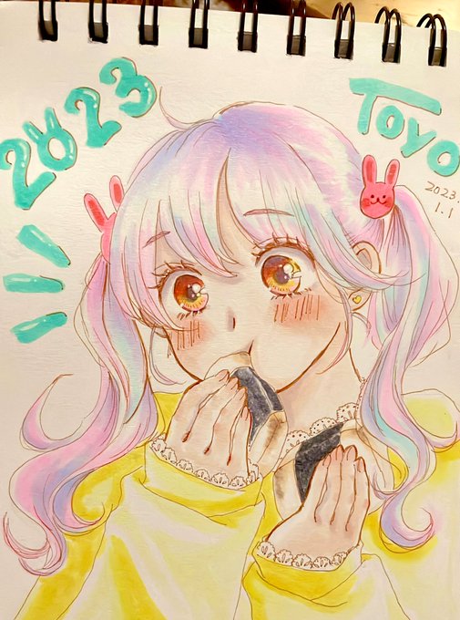 7 31 あけましたおめでとうございます〜 今年も皆様にたくさんの幸せが訪れますように❗️おもち食べすぎて太る… #絵描きさんと繋がりたい #コピック 23/01/01 20:33