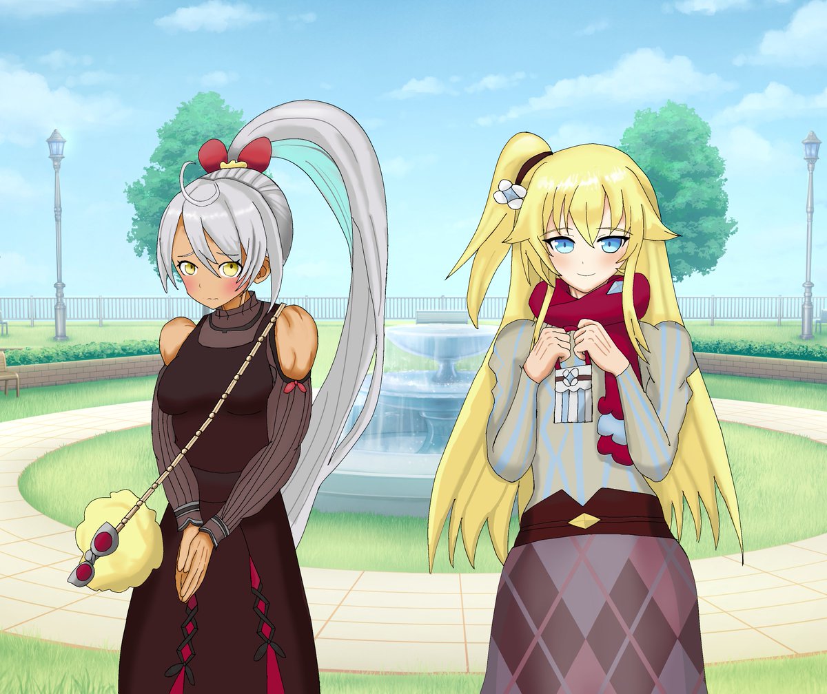 恋人繋ぎをしているアンエマ #白猫 #白猫プロジェクト #白猫お絵描き