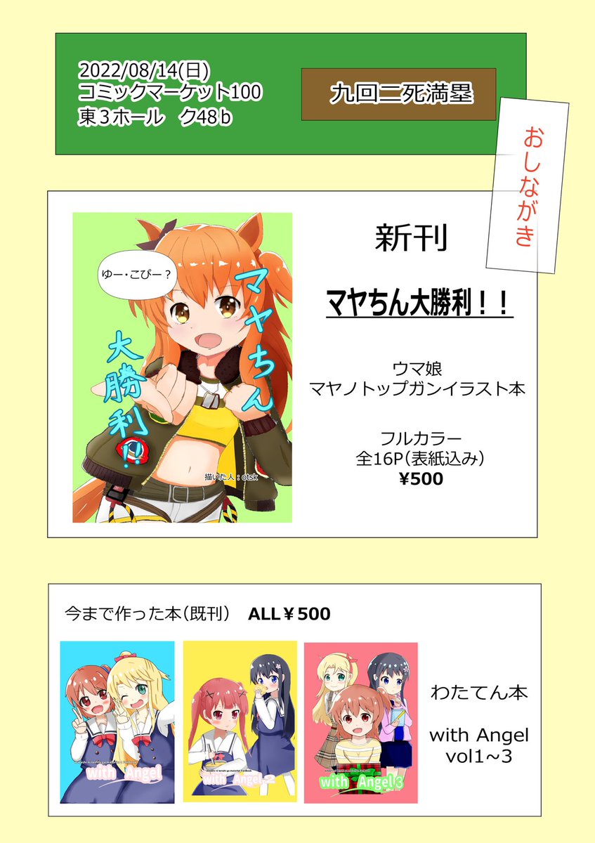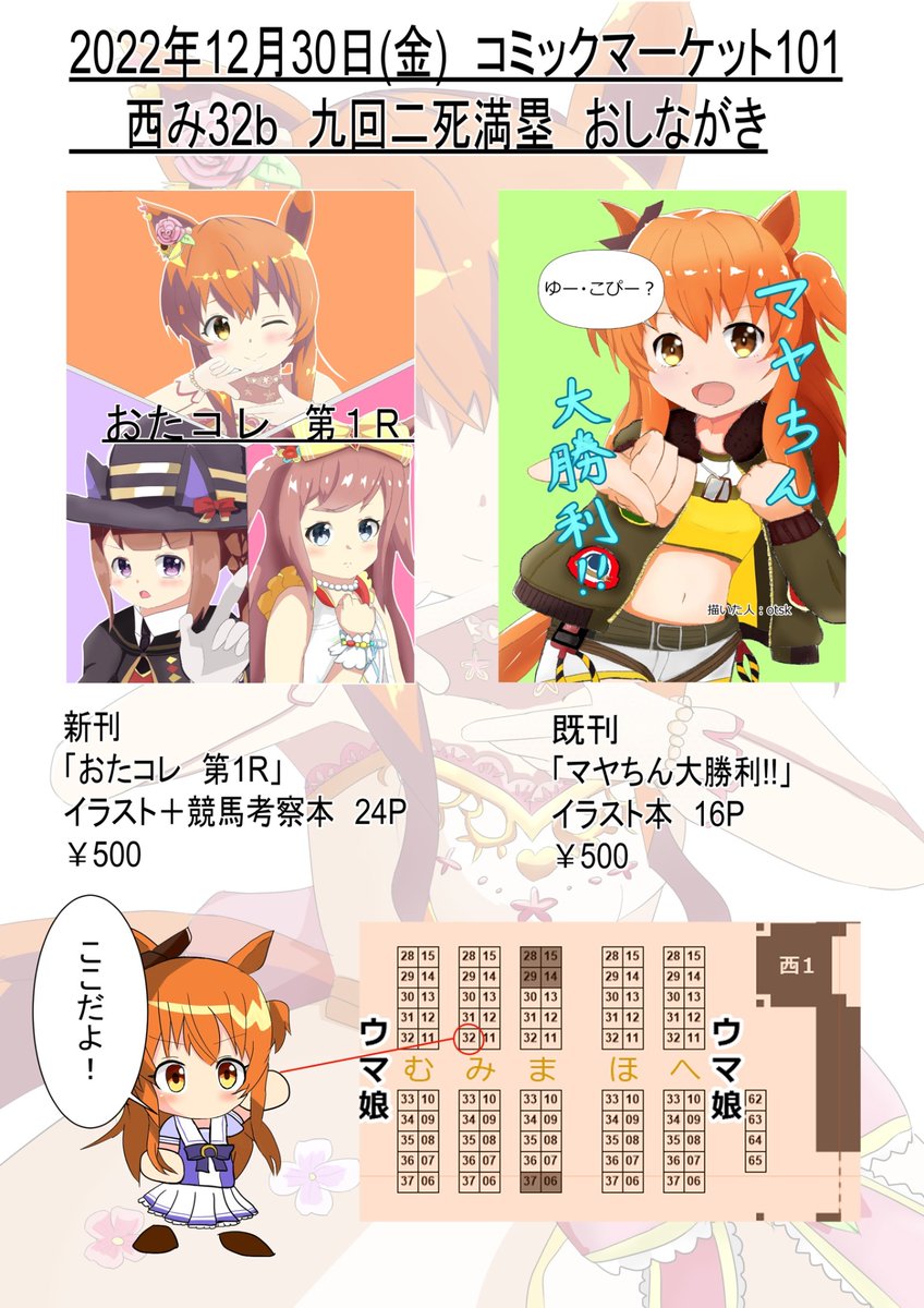 受かってました。今から原稿を始めます。ウマ娘の自分の好きなキャラを好きなように描いたイラスト本の予定です あなたのサークル「九回二死満塁」は、コミックマーケット102で「土曜日 東地区 “サ” ブロック 32b」に配置されました!#C102WebCatalog