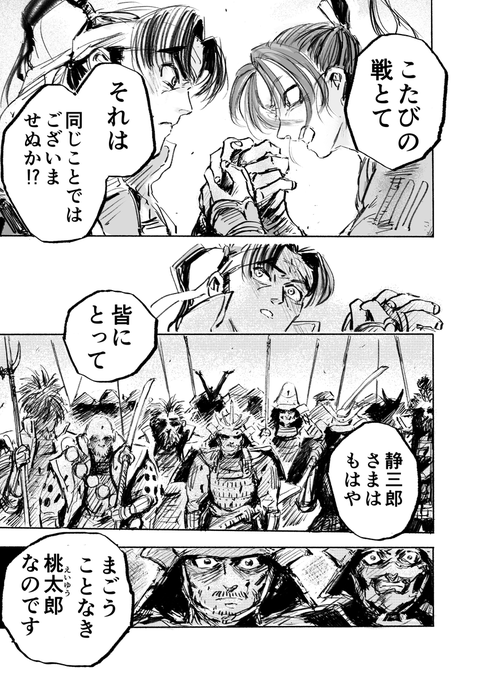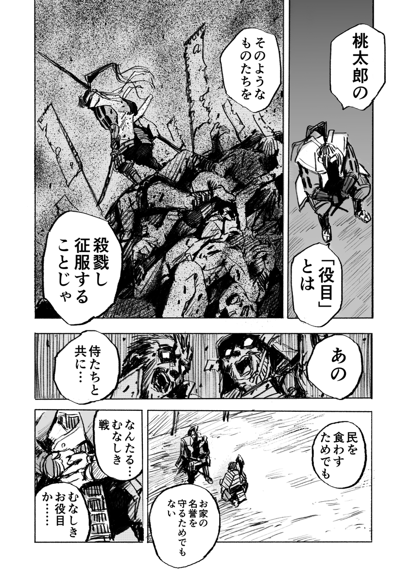【お知らせ】 「桃太郎殺し太郎」、残り二話で最終回となります。 せっかくなのでこの機会に少しでも多くの方に読んでもらいたいと思い、 最新話までの全話を二週間限定で無料公開してもらうことにしました。 →作品ページ【onl.tw/64nL6Wy】
