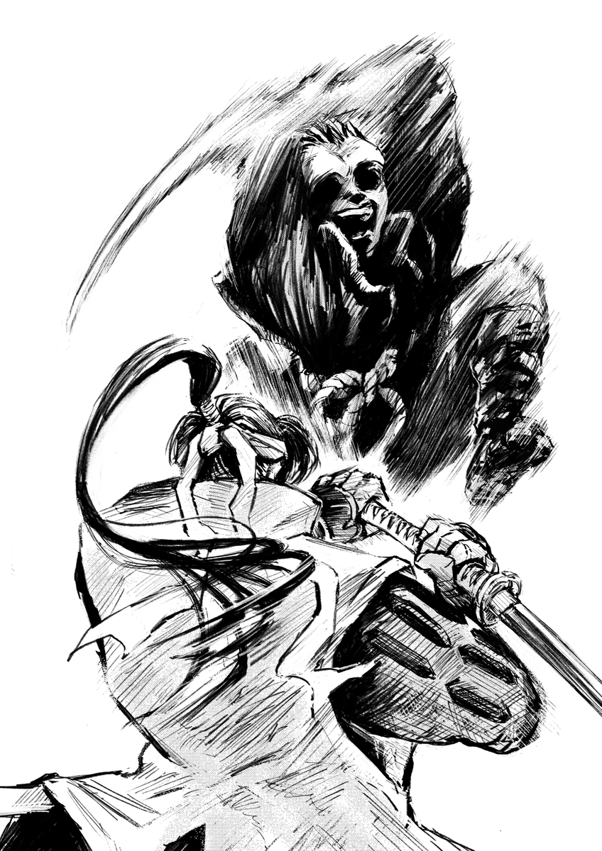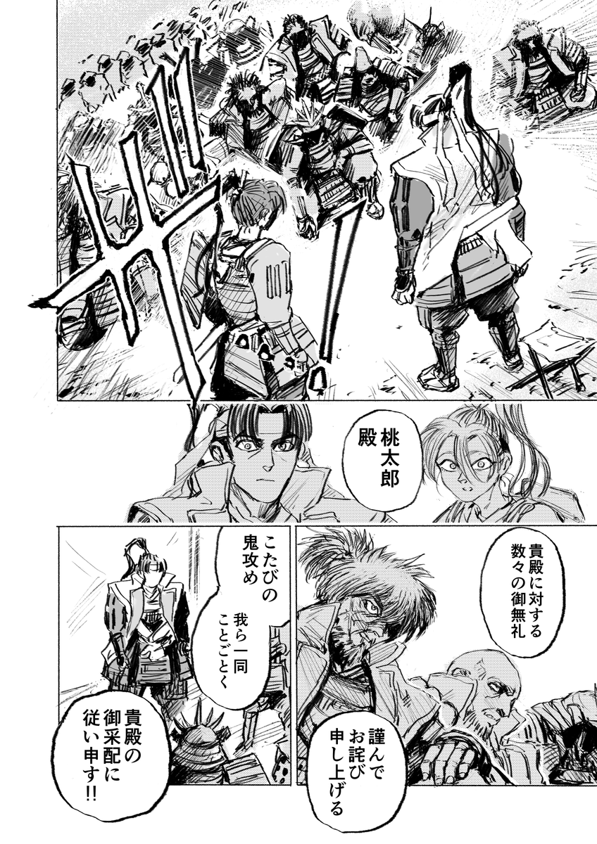 和風ファンタジーチャンバラ漫画 『桃太郎殺し太郎』 7/4まで全話無料公開中です~。 タイトルだけは聞いたことあるな~という人もこの機会にぜひ気軽に読んでみてください! 山田風太郎の忍法帖シリーズ的な世界観の桃太郎を目指して描いてるみたいなところがあります! comic-walker.com/contents/detai…