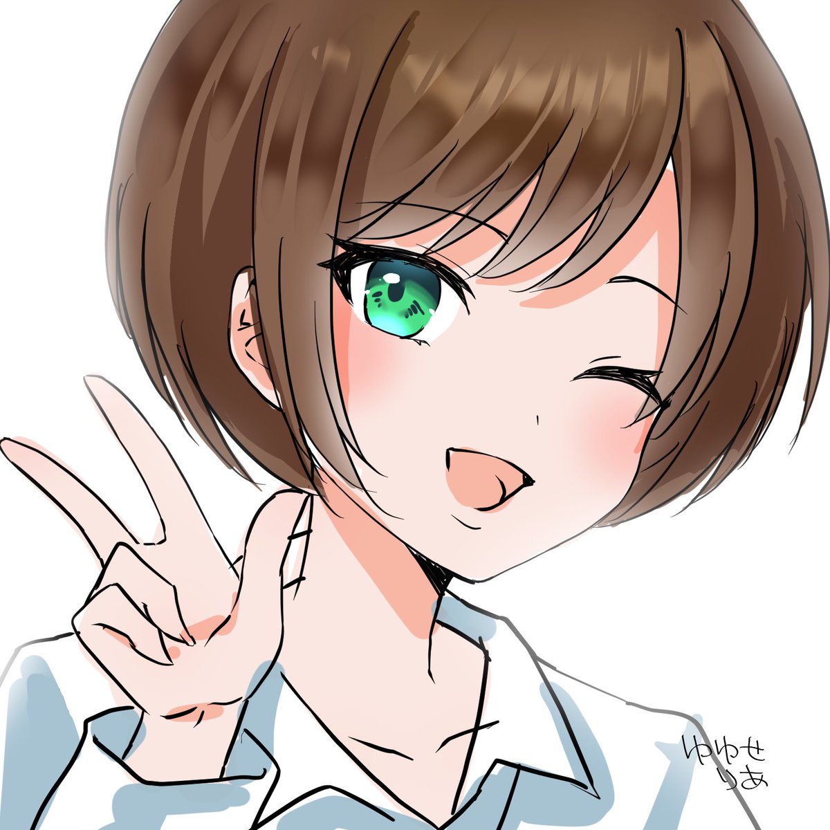 2 18 茶髪緑目ショートヘアの女の子 #イラスト #ゆゆせお絵かき企画 22/03/29 13:44