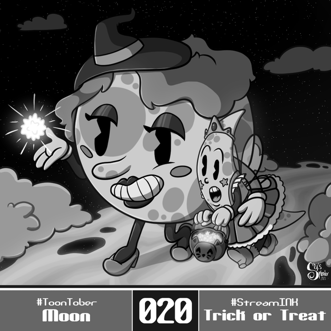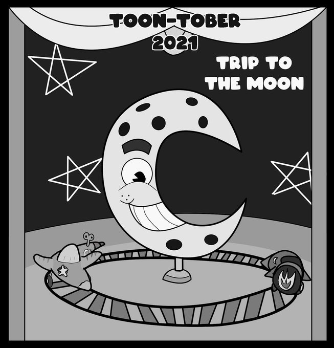 Check out this super cool piece for ToonTober! 🤩 Day 20: Moon. 🌛Done by: @GabrielRegli🌛 #inktober #digitalart #cartoons