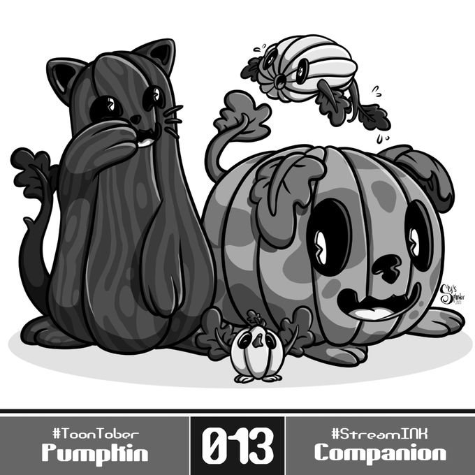 Adorable pumpkin companions from Day 13 of ToonTober.🎃 Done by: @SkysSplendor 🎃 #inktober #digitalart #cartoons