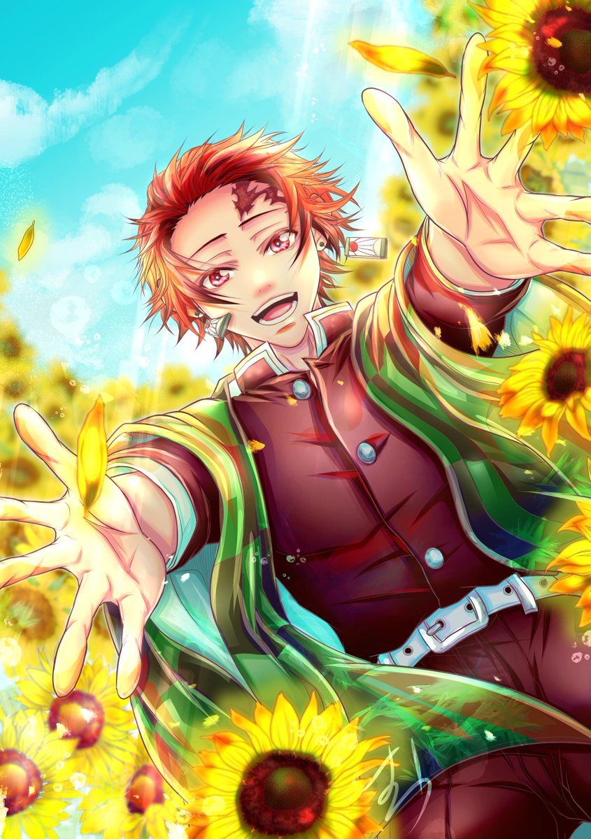 🌻二次アカの再掲🌻 去年の彼の誕生日に描いたものです💕 #絵柄が好みって人にフォローされたい #絵描きさんと繋がりたい #イラスト好きな人と繋がりたい #鬼滅の刃イラスト #鬼滅の刃ファンアート #竈門炭治郎