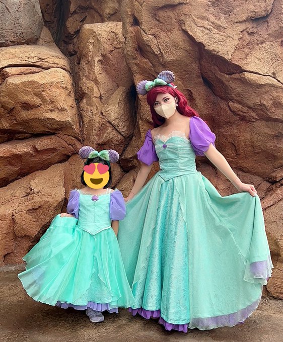 ビビデのドレスが可愛くて大人版作りました🪡 可愛いちびアリエルちゃんと🥰🥰🥰 ありがとうございました♡ #Dハロ仮装2022