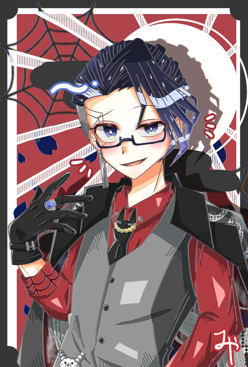 #コンパスお絵描き #黒髪スーツメガネで独占欲が強い天然人懐っこい変態であみぐるみ作りが趣味の極悪非道の若頭 輪廻さん🕸