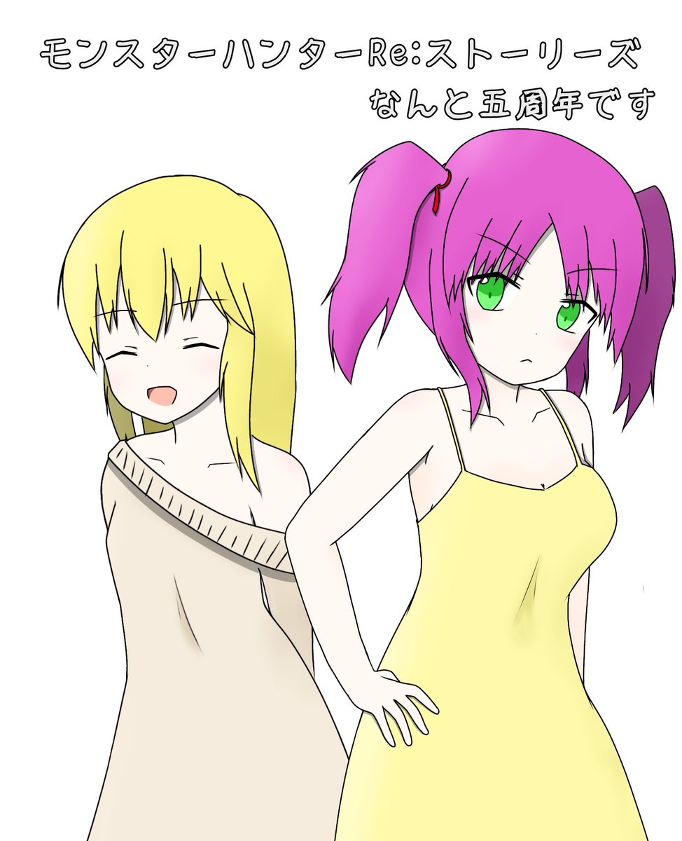 「モンスターハンター Re:ストーリーズ」更新しました。 syosetu.org/novel/100360/ #hamelnovel #hmN100360 後日談 九十八話「孤独な青年と少女の答え」 今回はアザミちゃんの話。記念イラストはミズキとアザミ私服取り替えっこです。脅威の胸囲差だね