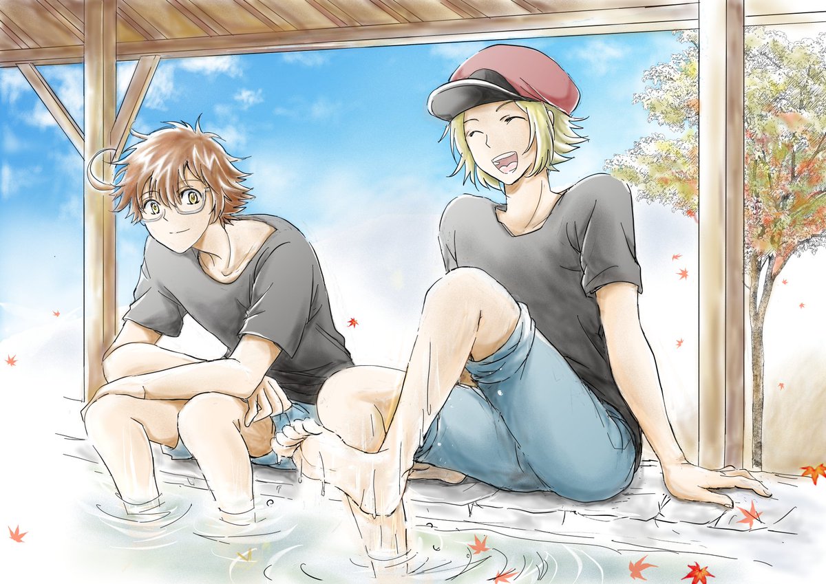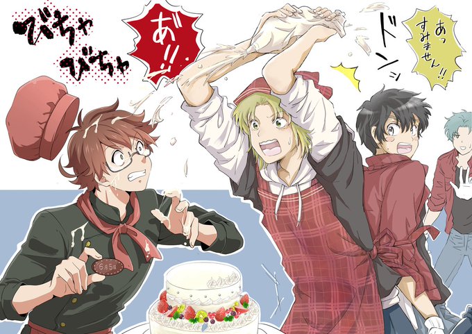#6月5日は5377真ん中バースデー この度、ばんちー様(@BNC_0116)と合作してバースデーイラストを描かせて貰いました!❣️🙏この構図自分が考えたんですが、77君のせいで酷い目に遭う53君というのが割と気に入っていまして…(オイ)まぁその代わり後から10倍位に返されそうなんですけどね…😂
