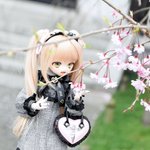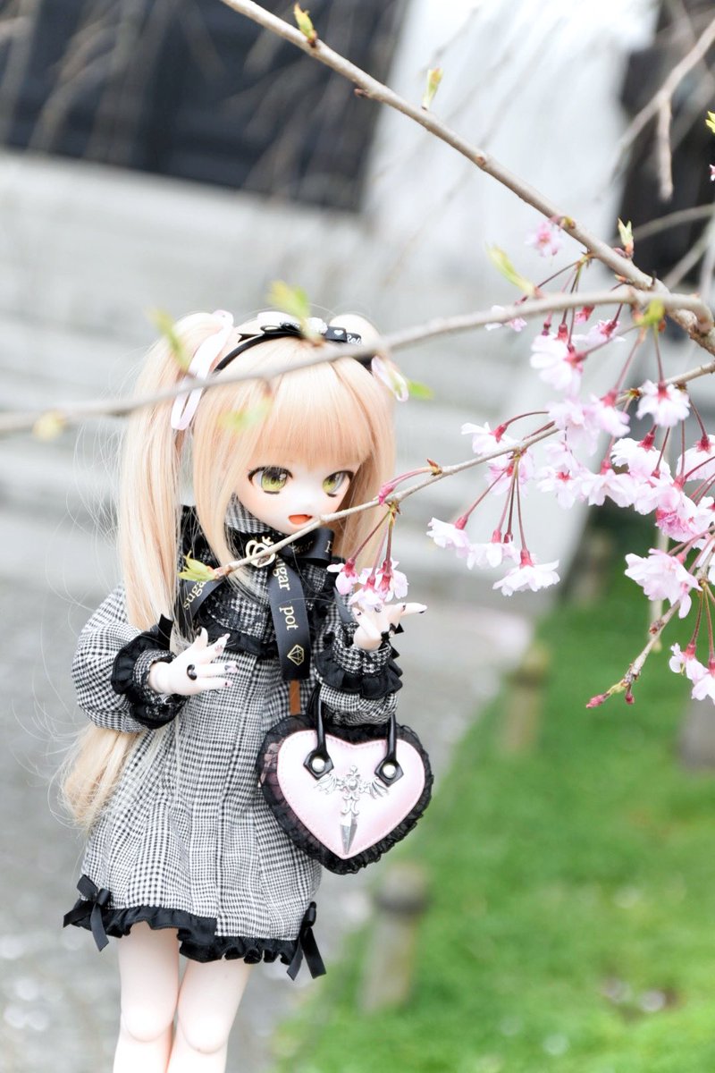 おはようございます!今日もがんばりましょう( ᵒ̴̶̷̤໐ᵒ̴̶̷̤ )☀️ しだれ桜とりりちゃん🌸 #しゅがぽ服 #ふにゃほわっ子 #おはドル #うちのこかわいい