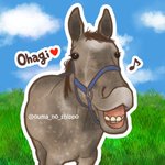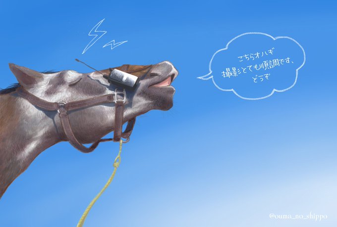 トランシーバーオハギのお写真が衝撃的な可愛さで、ファンアートを描かずにはいられませんでした……! スタッフさんや他のお馬さんと交信してるみたい🎶🐴 #馬のイラスト #レイクヴィラファーム #オハギ