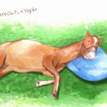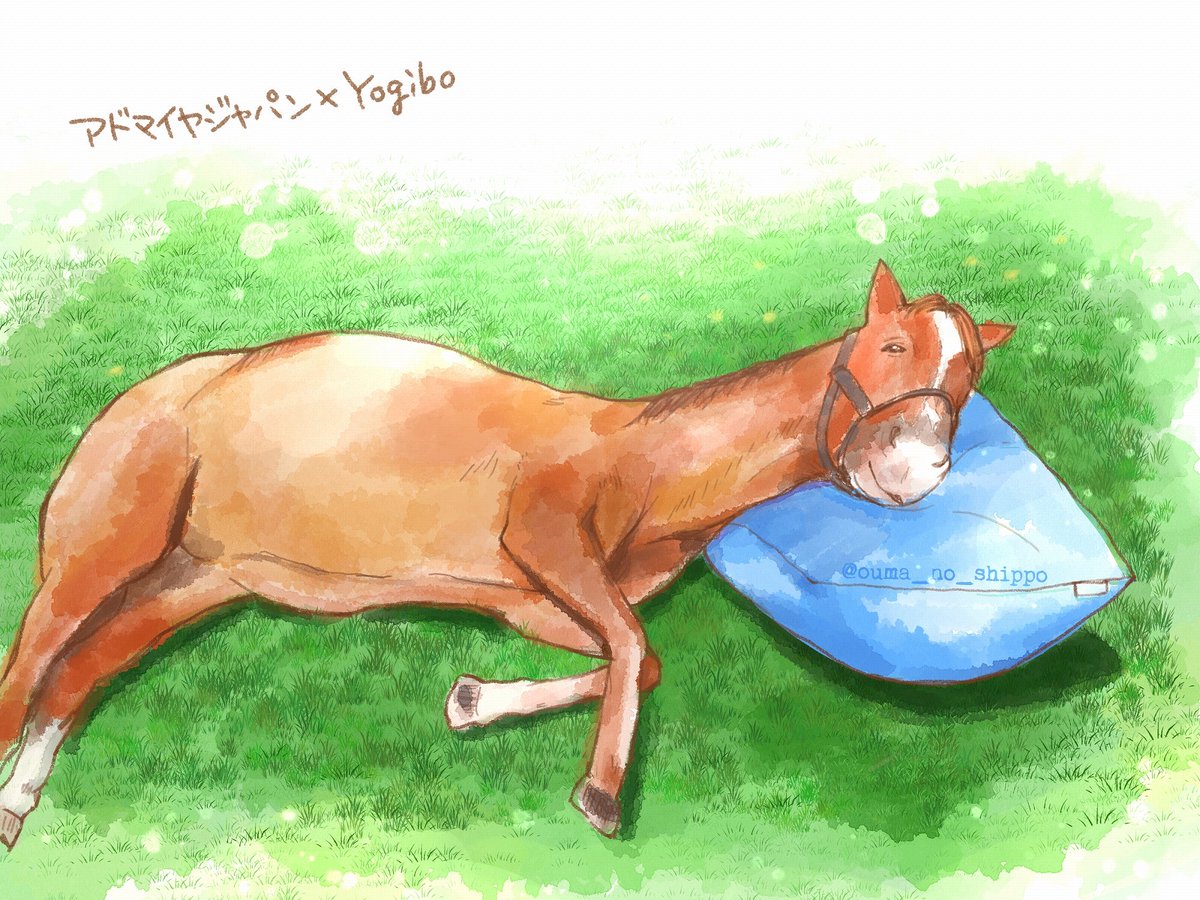 らくがきアヤパンくん🐴 馬をダメにするソファー動画があまりにも平和で可愛すぎて…… (オタク、感極まるとファンアート生み出しがち) ウトウトしてるお顔が幸せそうでたまらんかった〜😂✨ #馬のイラスト #アドマイヤジャパン #Yogiboヴェルサイユリゾートファーム