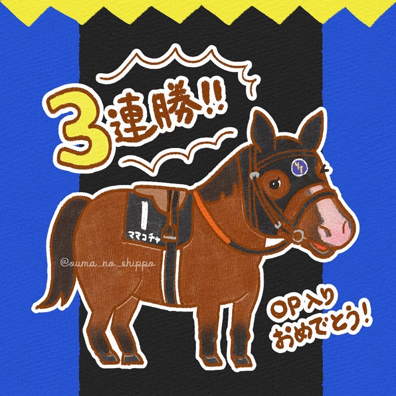 ちょっと遅くなっちゃったけど、OP入りおめでとうナンデクン🥳✨ 明るい芦毛の馬体にカラフルな勝負服が映える可愛い子🥰 次も絶対応援するよ!! #ハヤブサナンデクン #イラスト #馬のイラスト