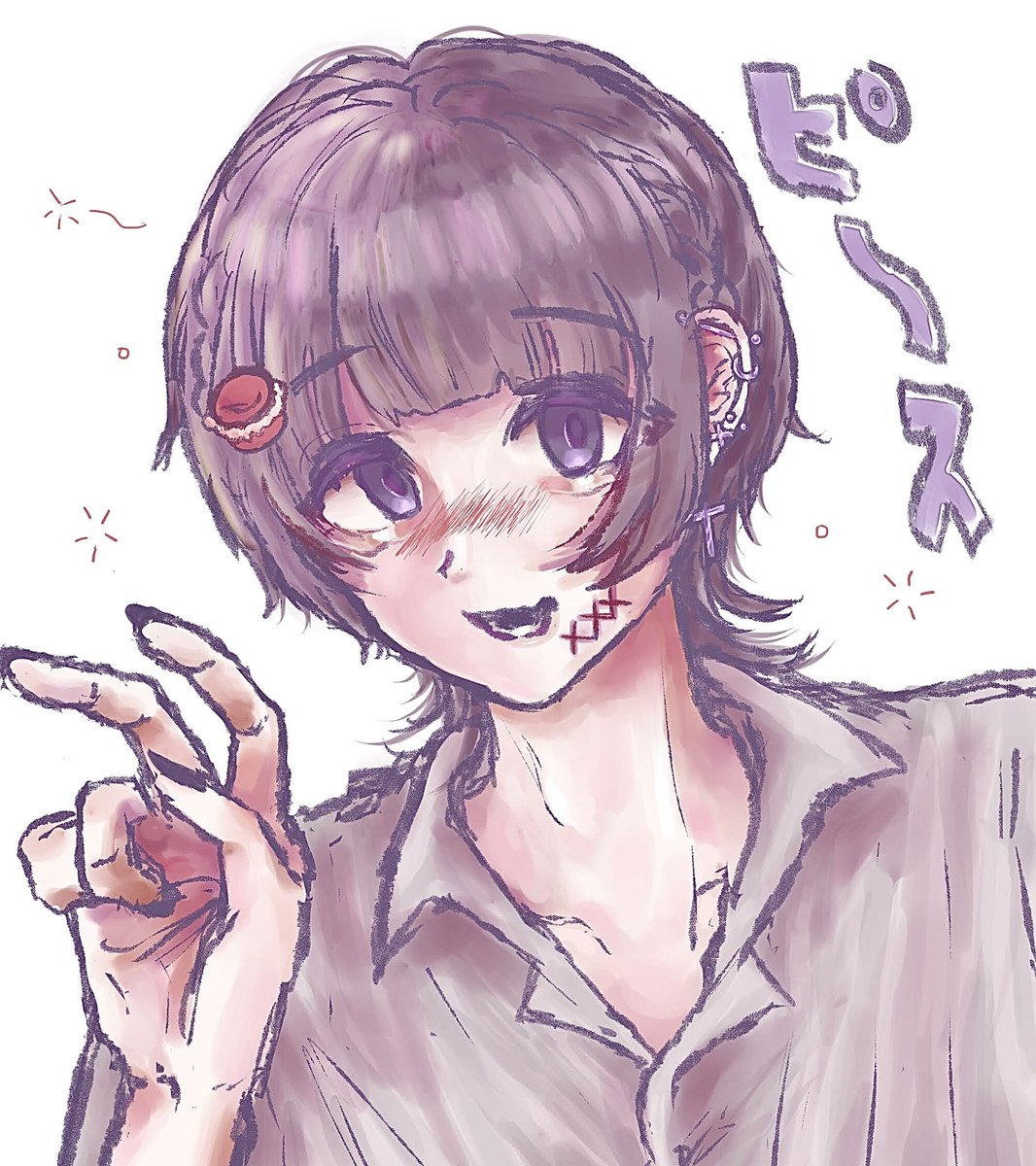 陰キャピースもかわいい(ᐡ⸝⸝- ̫ -⸝⸝ᐡ) #あまねのね #あまねの絵