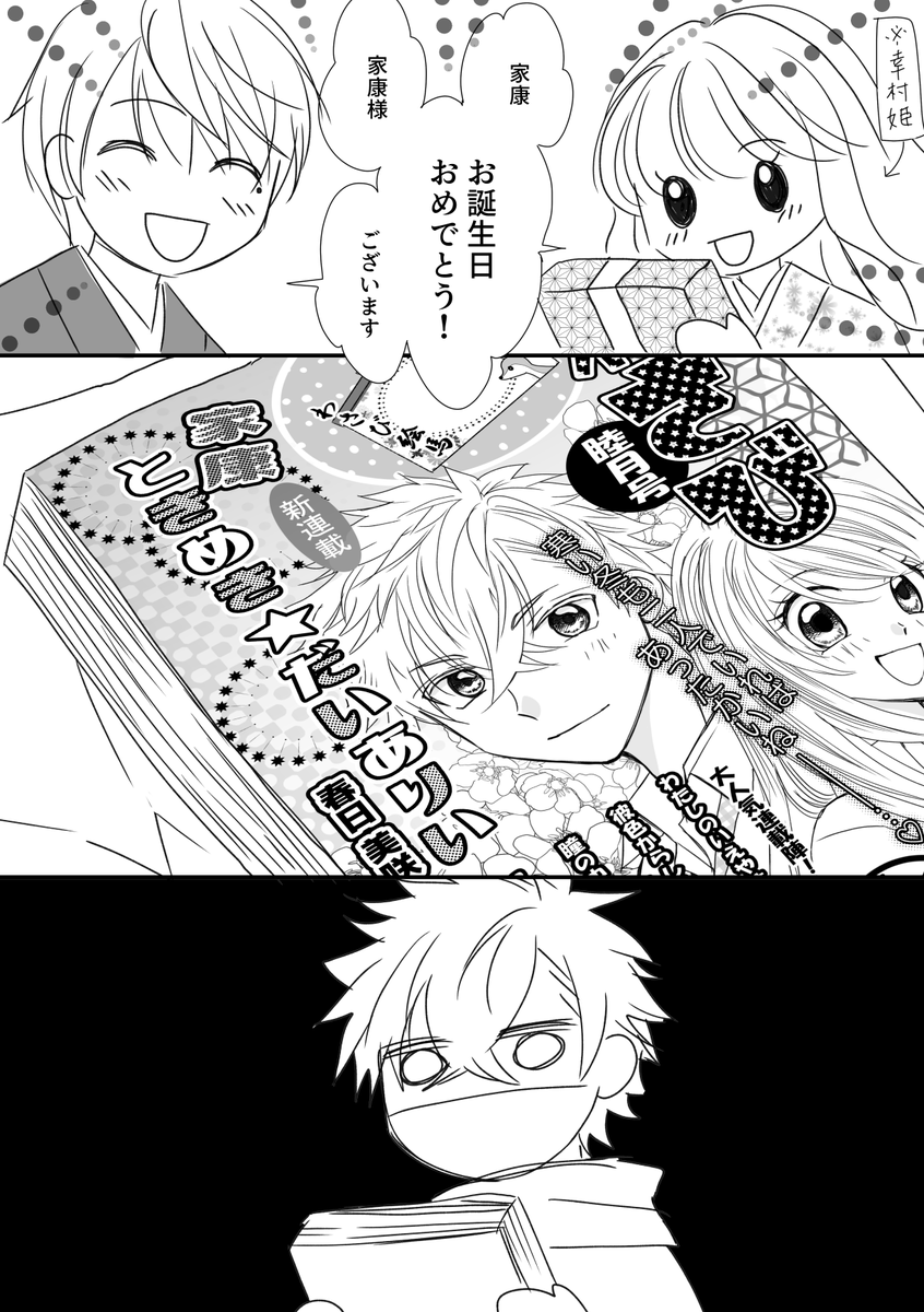 兼続さんお誕生日おめでとうございます🥳✨ 昨年の源氏伝総選挙で順位当て勝負をし歴史的大敗を喫した逢坂、罰ゲームでえむこさんリクエストの漫画も描いておりました ※軽い本編ネタバレ注意 タグお借りします😊 #越後の旦那様に比翼連理の想いを捧ぐ_直江兼続誕生祭2023 #イケ戦FA (1/2)