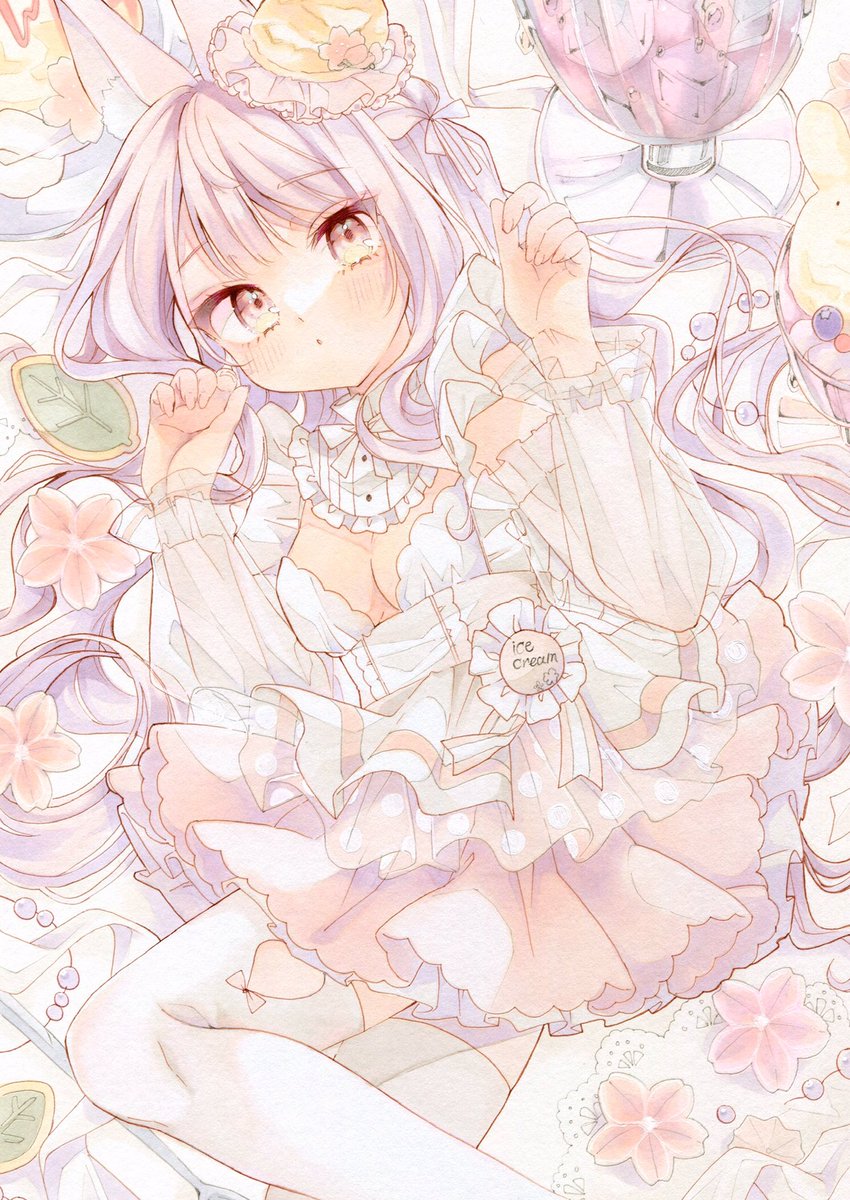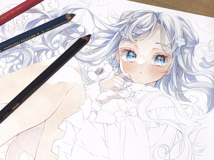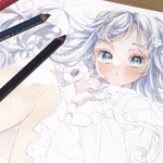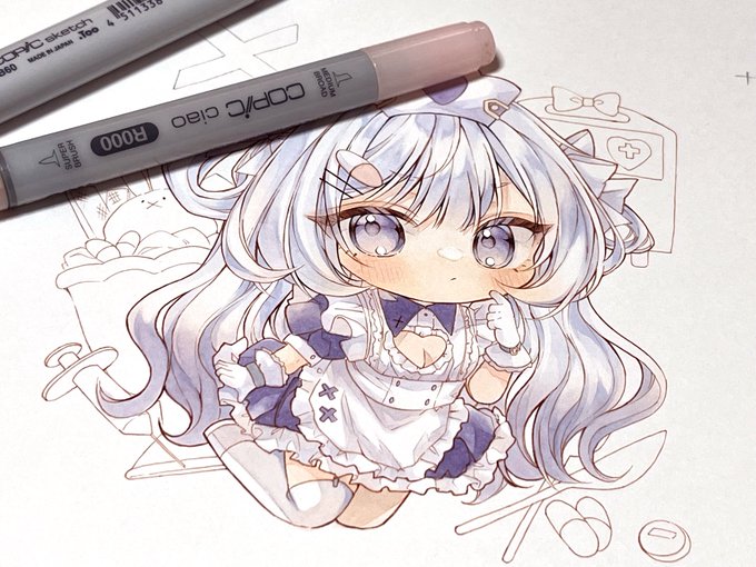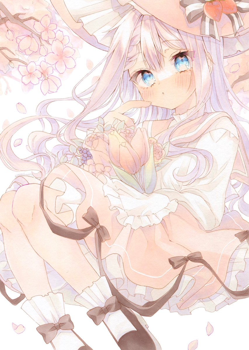 コピック使用して透明感の高めな ふんわりとした女の子を描いてます🌷 フリルとリボン色素薄めな女の子が好きです♡ ♡RTどちらもまわります お顔が切れて悲しい😭 #春の創作クラスタフォロー祭り #絵描きさんと繋がたい