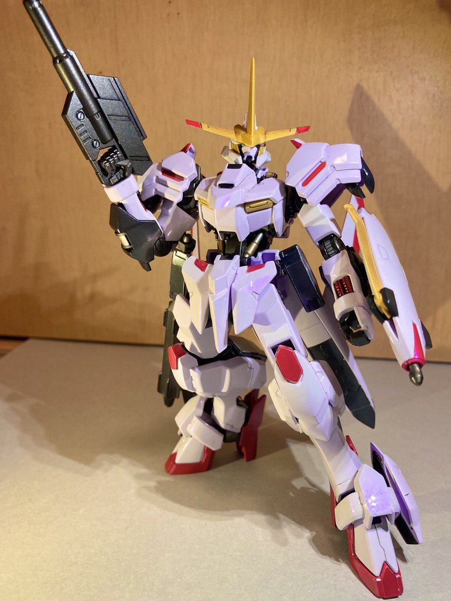 でけた!ガンダム端白星! 紫のパール塗装を施し コンパウンドで光沢を出したものの、写真じゃ上手く見えず半ば無理矢理明度などを調整。生で見ればわかるけどな… #ガンプラ好きな人と繋がりたい #ガンプラはどんな自由な発想で作ってもいいんだ #ガンプラの画像貼るとRTされると聞いて #ガンプラ