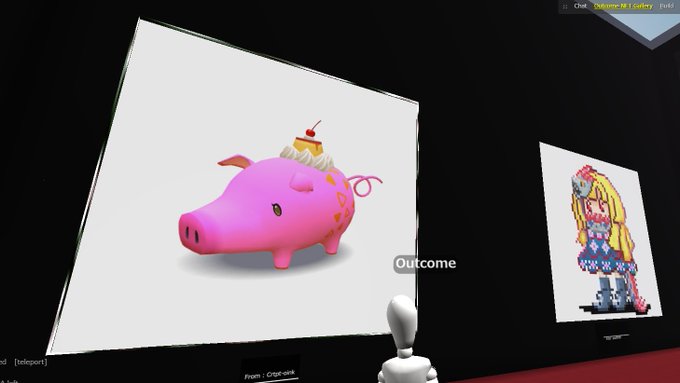これがぴっぴ教団のNFTアートによる世界計画のはじまりでぴよ #NFTart #cryptovoxel #Rarible #自作シール cryptovoxels.com/play?coords=S@… twitter.com/Pippi_NFTart/s…
