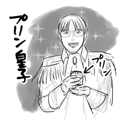 雑で申し訳ないですが、ざざっと描いたプリン皇子ことNAKAHAMA先生(@naoyukinkhm)。 ご本人が喜んで下さった笑 スタンド使い化ではないけれど、わたしのらくがき犠牲者4人目。 (皇子のスタンドはもうわたしの中では決まっている)