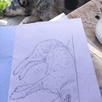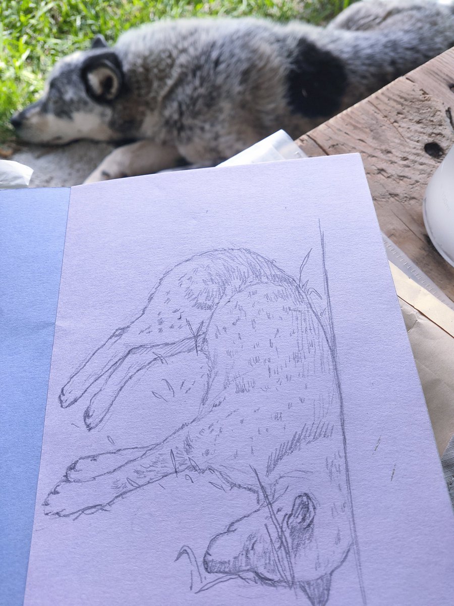 1 12 いつもわたしらについてまわる、キャンプ地のわんこのチキを描きました(描いた時と姿勢変わってますがチキも写ってます) 23/05/31 19:04