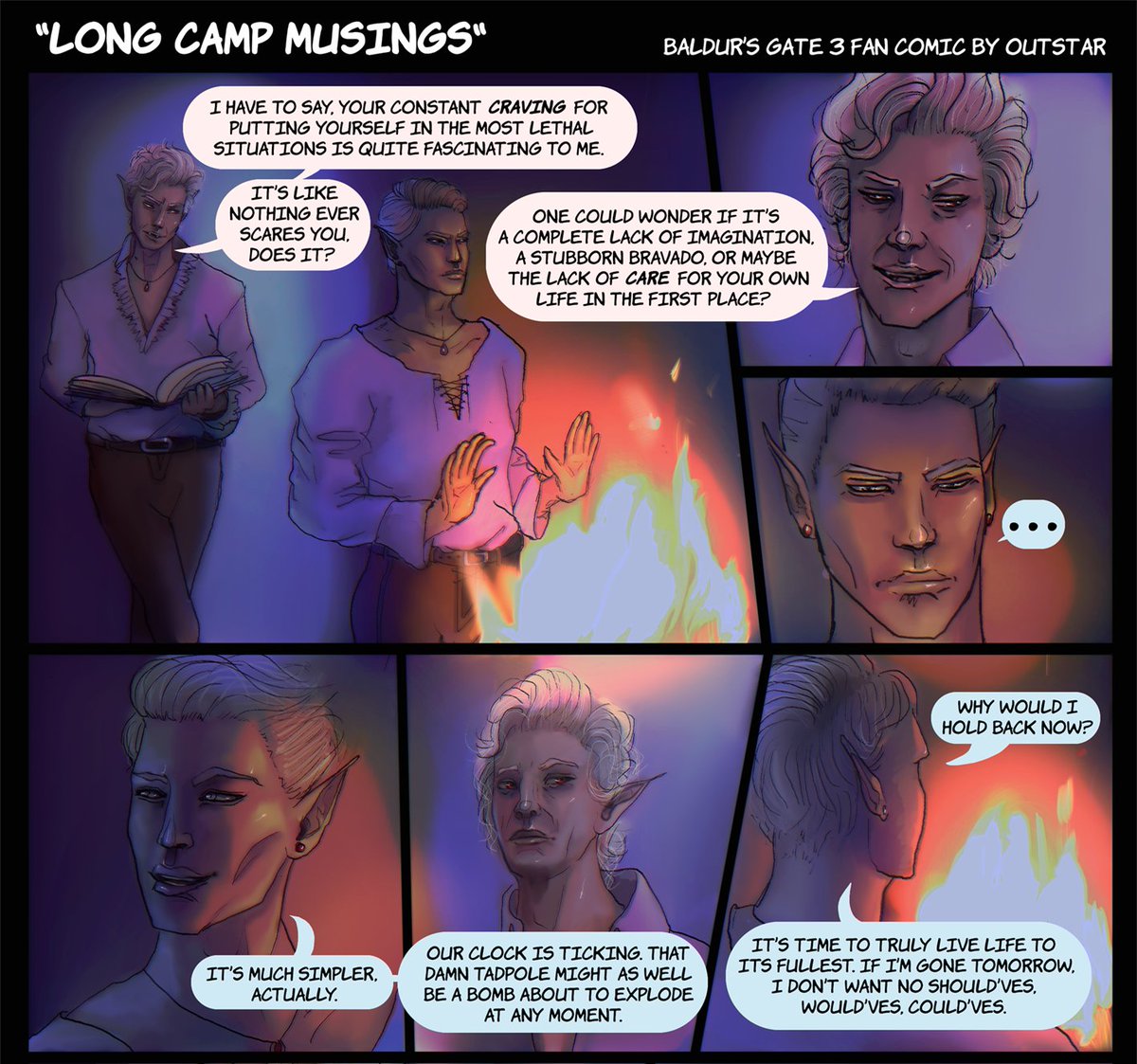 my playthrough is almost over and I will miss these two so much, so here's my fan comic of Astarion and my tav, Zenith. 💙 #BaldursGate3