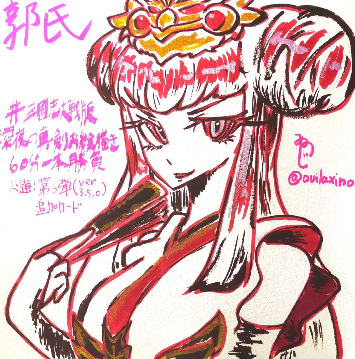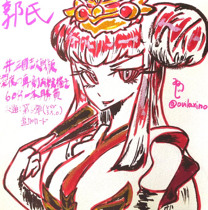 #三国志大戦版深夜の真剣お絵描き60分一本勝負 ワンドロお邪魔します〜! 遊軍郭氏ちゃんのまつ毛バシバシで気も強そうで可愛いなぁ