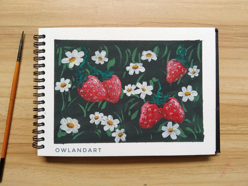 strawberries and daisies 🍓🌼🌿 #gouache #art #artidn #zonakaryaid #ArtistOfIndonesia @CmsnArtist_Id