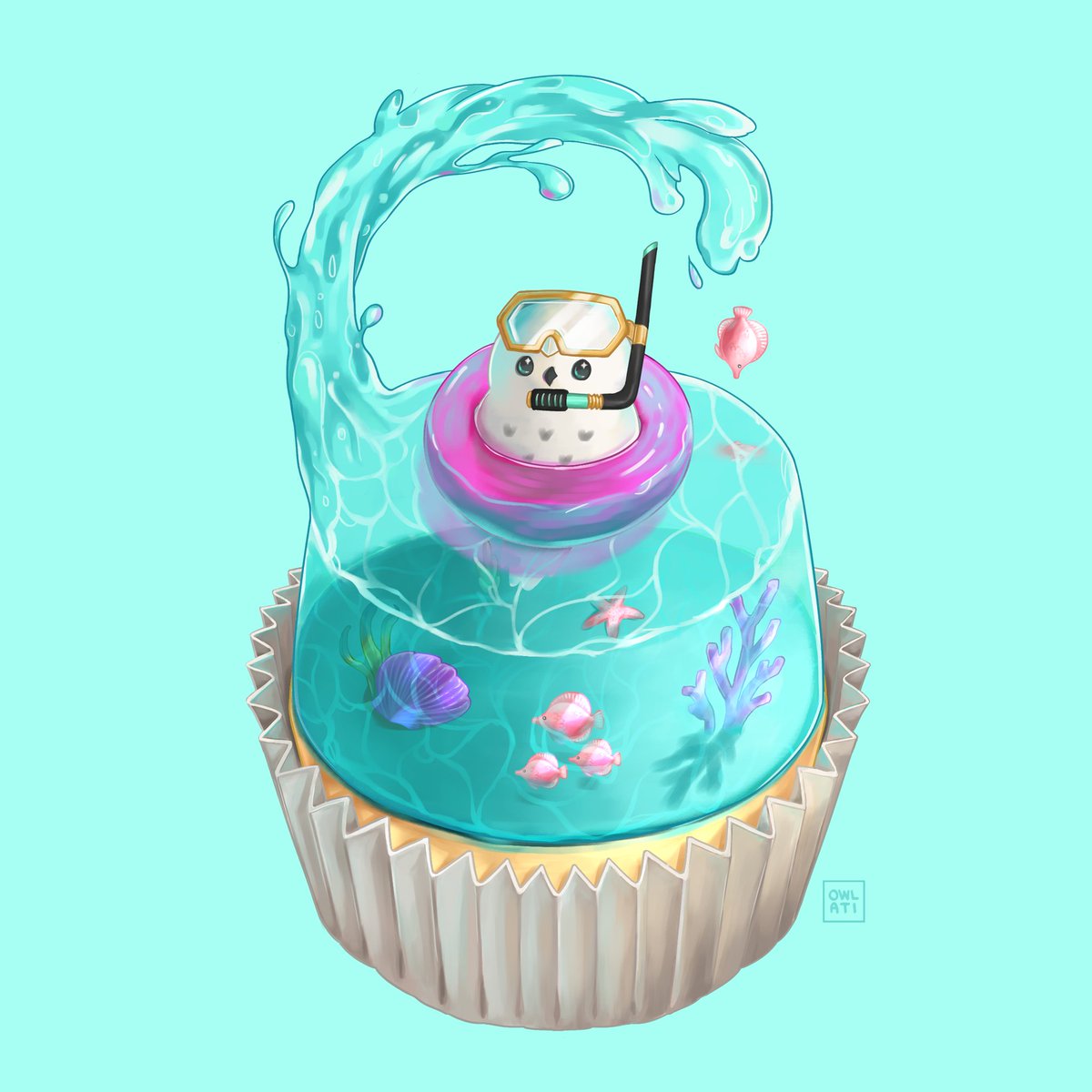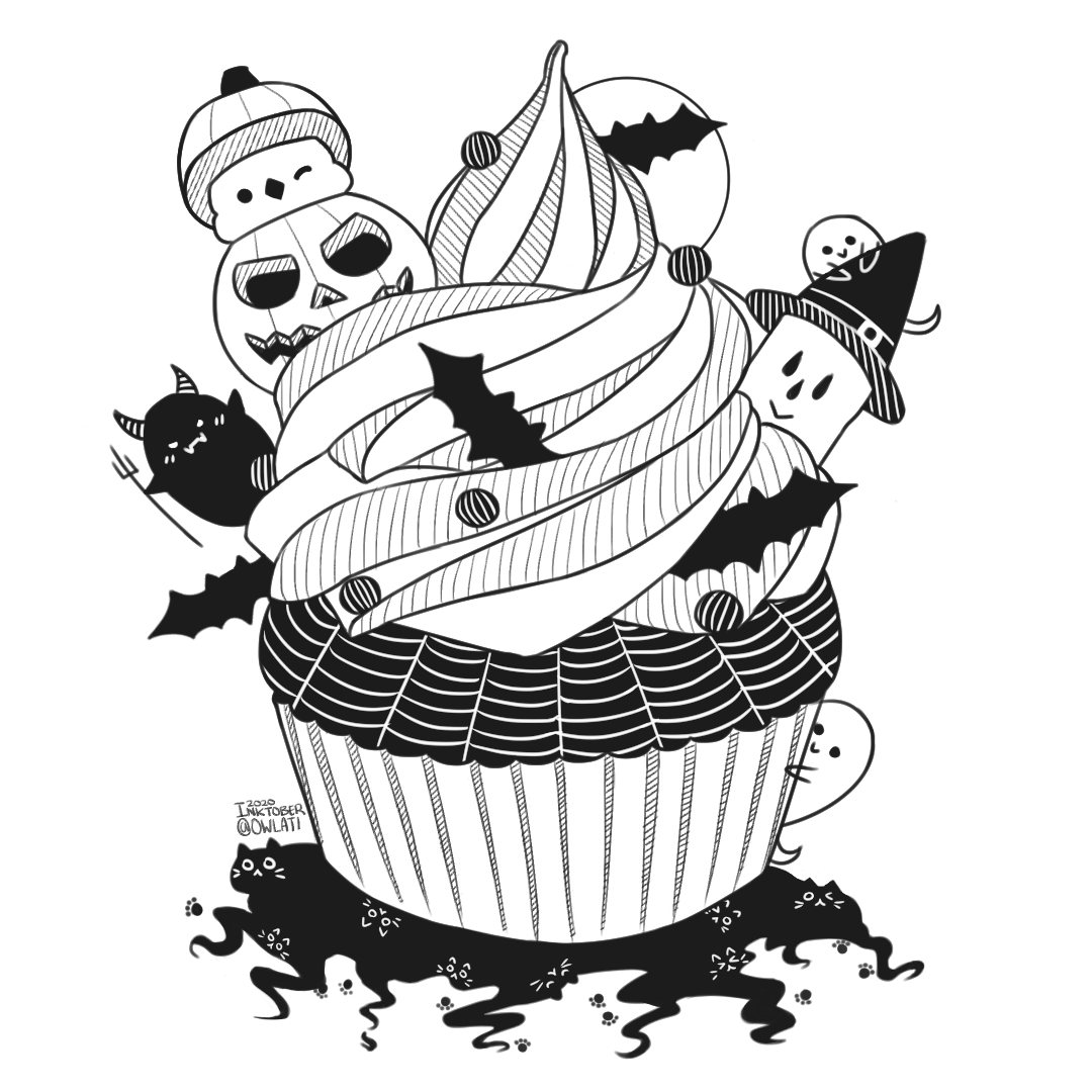 Day 10: Oswin's Halloween themed cupcake. 🤤🥰❤️ #Inktober #drawtober #catober #birdtober #illustration #foodart