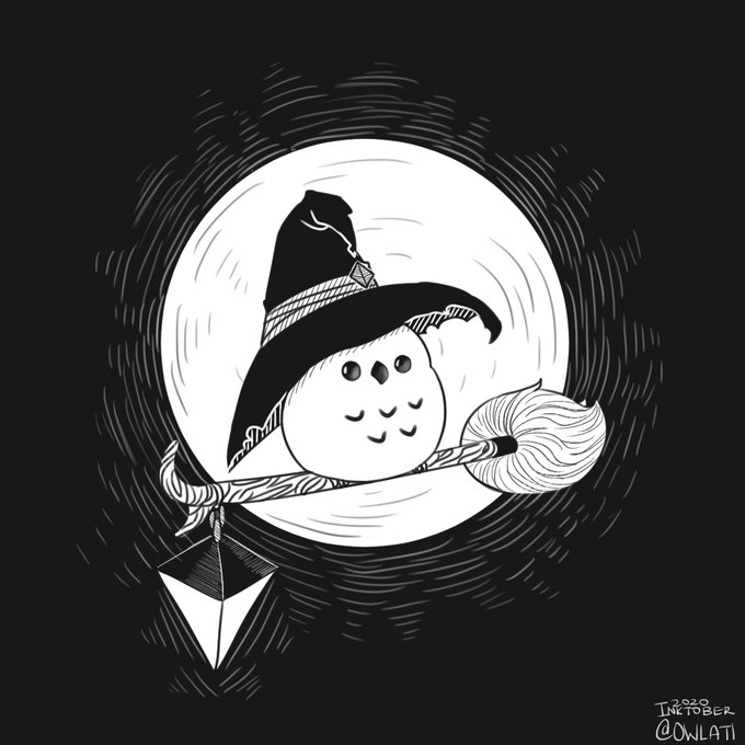 Day 7: Oswin as a witch 🧹 on his nightly flying routine. #inktober2020 #drawtober2020 #illustration #owlart
