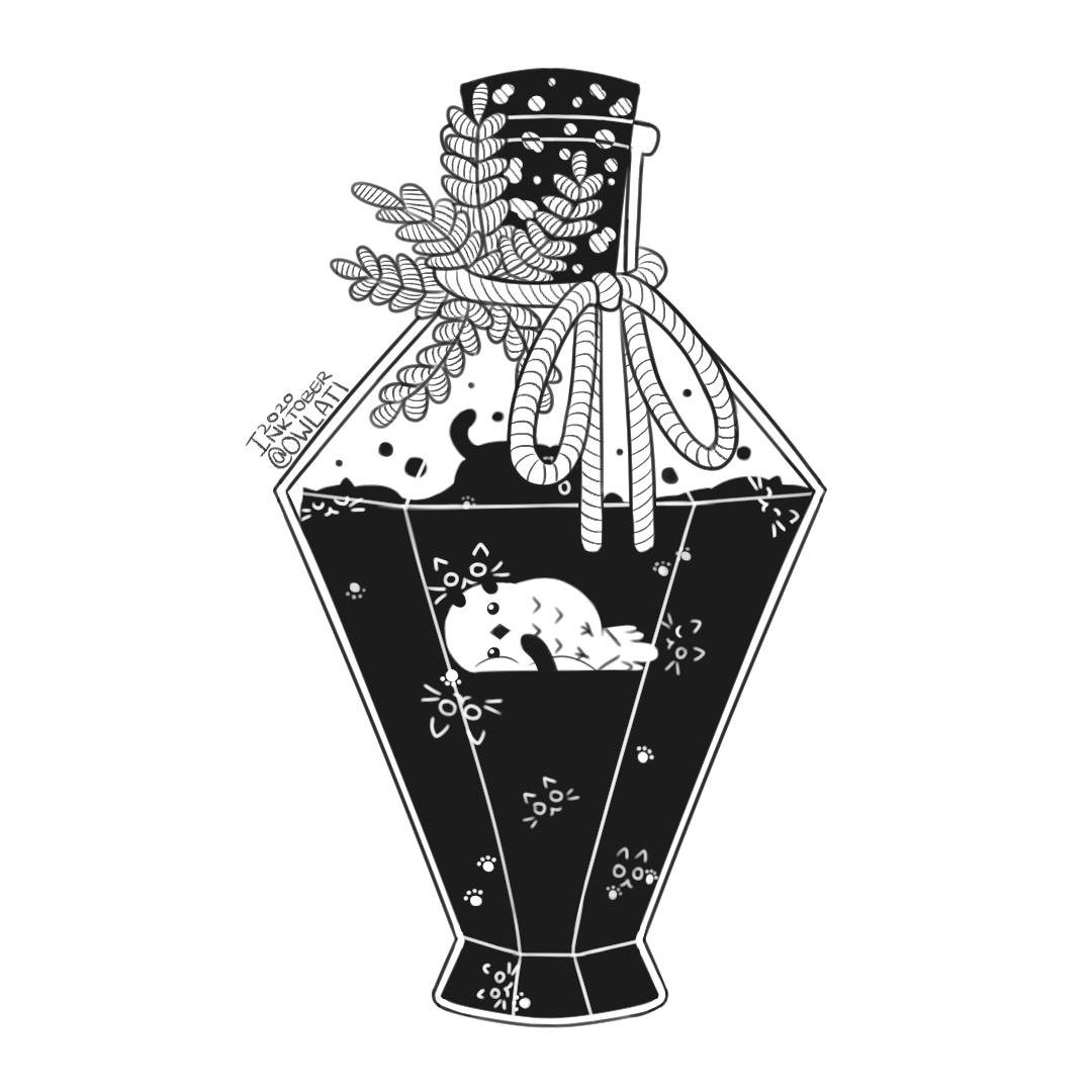 Day 9: Oswin in a bottle filled with void cats [♥️Retweets and likes are appreciated♥️] Oswin is my mood, darkness come take me or drown me in cats 🤣 Had a lot of fun drawing this. #inktober2020 #drawtober2020 #Catober #birdtober #illustration #birdart