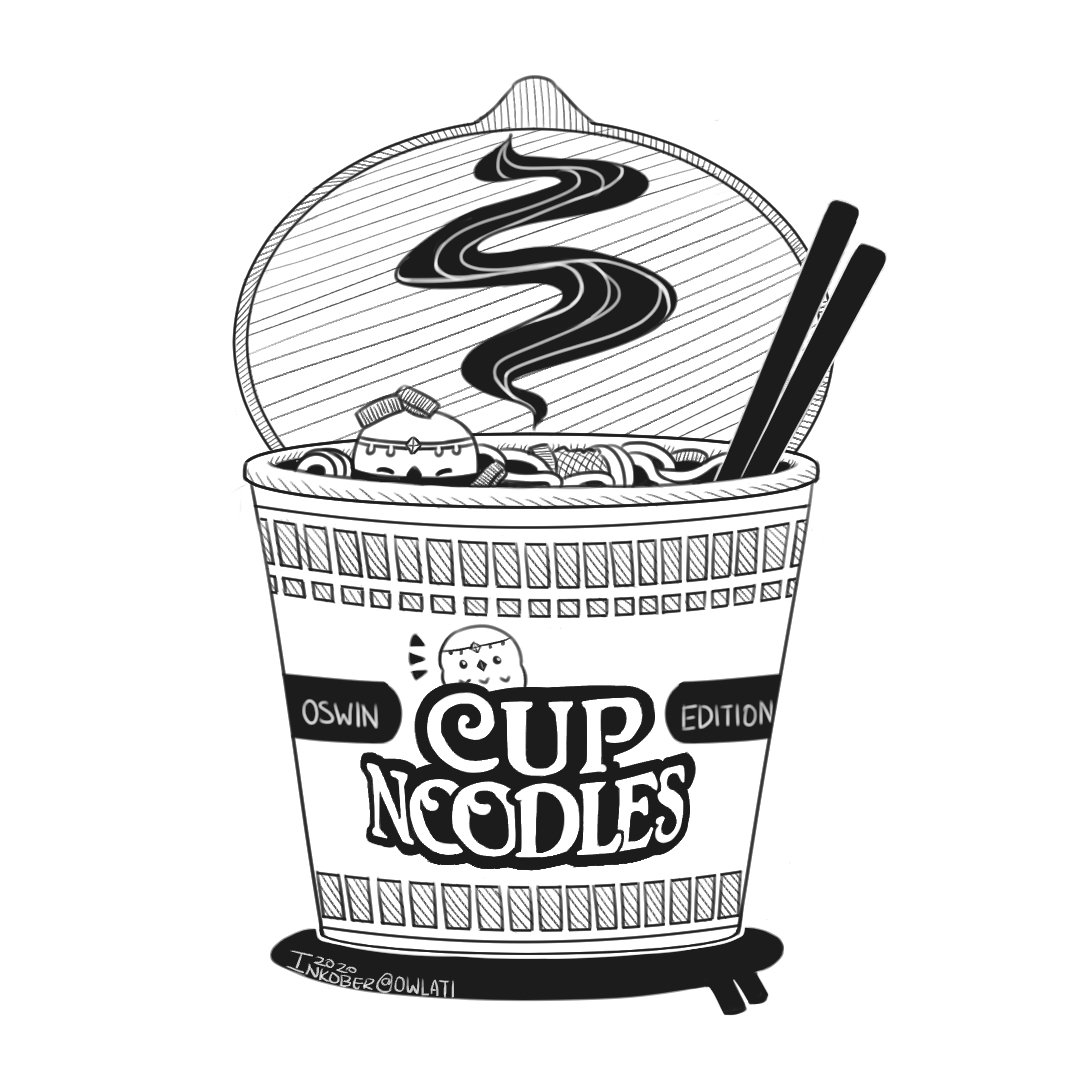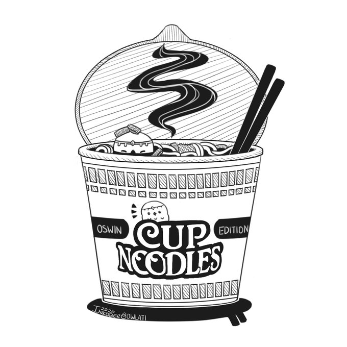 Day 12: Oswin's Limited Edition Cupnoodle #foodillustration #cupnoodle #inktober #drawtober #birdtober #artober #Owl