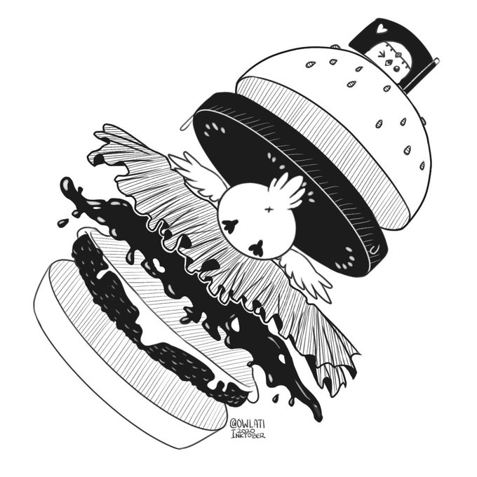 Day 13: Deconstructed Hamburger #foodart #Inktober #drawtober #birdtober #creatober #illustration #owl