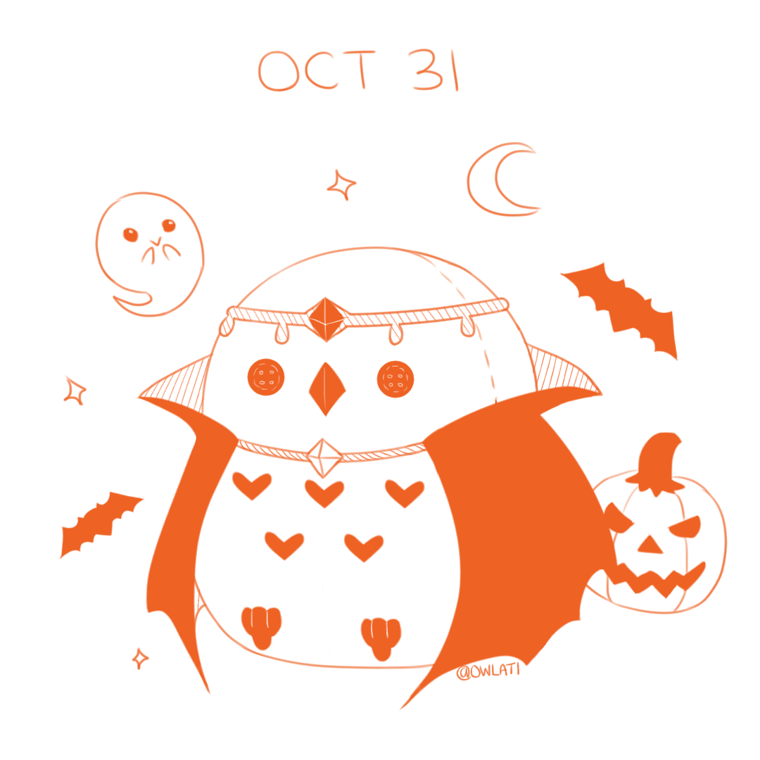 🦇🎃 Happy Halloween 🎃🦇 stay safe everyone! I guess I didnt make the full inktober but I tried 😭 Giant vampire Oswin plush with Sid dressed up as a vampire ♥️ #Halloween2020 #vampire #inktober #illustration #owl