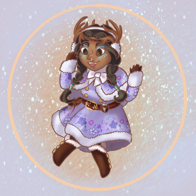 VethVethVethVeth in booties and fluffy winter flowers and antlers! Little reindeer! Very cute! #CriticalRoleFanart #Vethfanart #digitalart #procreate #artistsontwitter