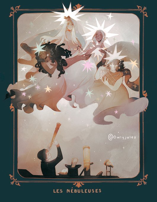 My full piece for @Nova_Mali Classics volume 3! I am so glad I was able to participate in the Final Volume!❤️ This is my interpretation of "Les Nébuleuses" by J.J Grandville! 🌟 #queerart #PrideMonth #wlw #illustration #Procreate
