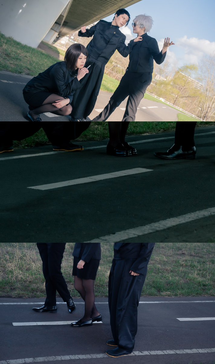 9 19 cos 呪術廻戦/家入 硝子 万古長 青 春 雷 五条 悟:@nigiri_meshi_oo 夏油 傑:@m_sea_aot photo: @s2mugen 23/01/17 11:35