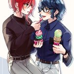 つむ夏がアイスを食べてる絵です💙❤️🍨🍦😋
