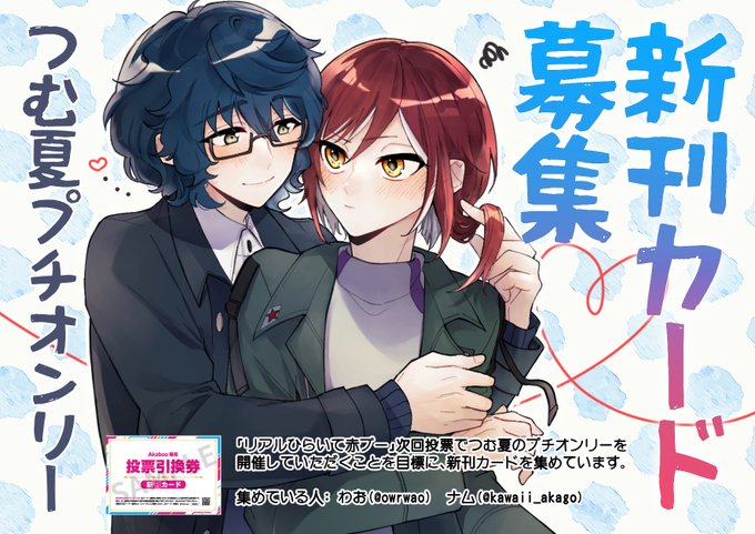 つむ夏プチオンリー開催に向けて、次回投票を目標に新刊カードを募集しております! ご協力のほどよろしくお願いいたします💙❤️ 募集方法はリプツリーで確認お願いします!