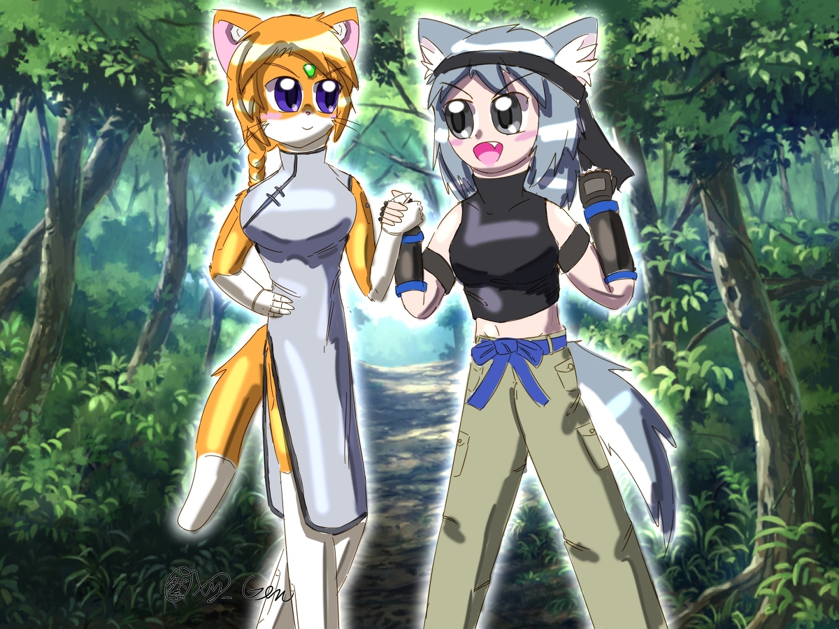 チャル&ジェニー #描かせていただきました #チャル(スピリットファンタジア) #ジェニー・ミン #ケモノ pixiv.net/artworks/98230…