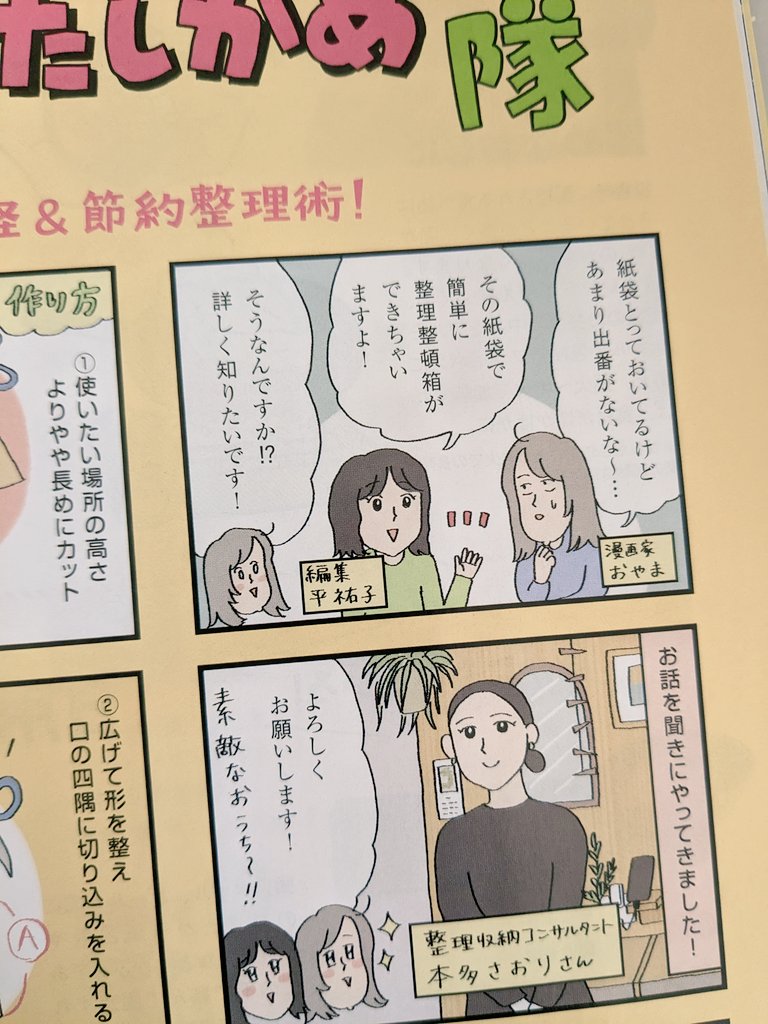 0 8 オレンジページ3/17号「そこが知り隊・たしかめ隊」コーナーにて紙袋収納のレポ漫画を描きました🙆 23/03/09 09:24