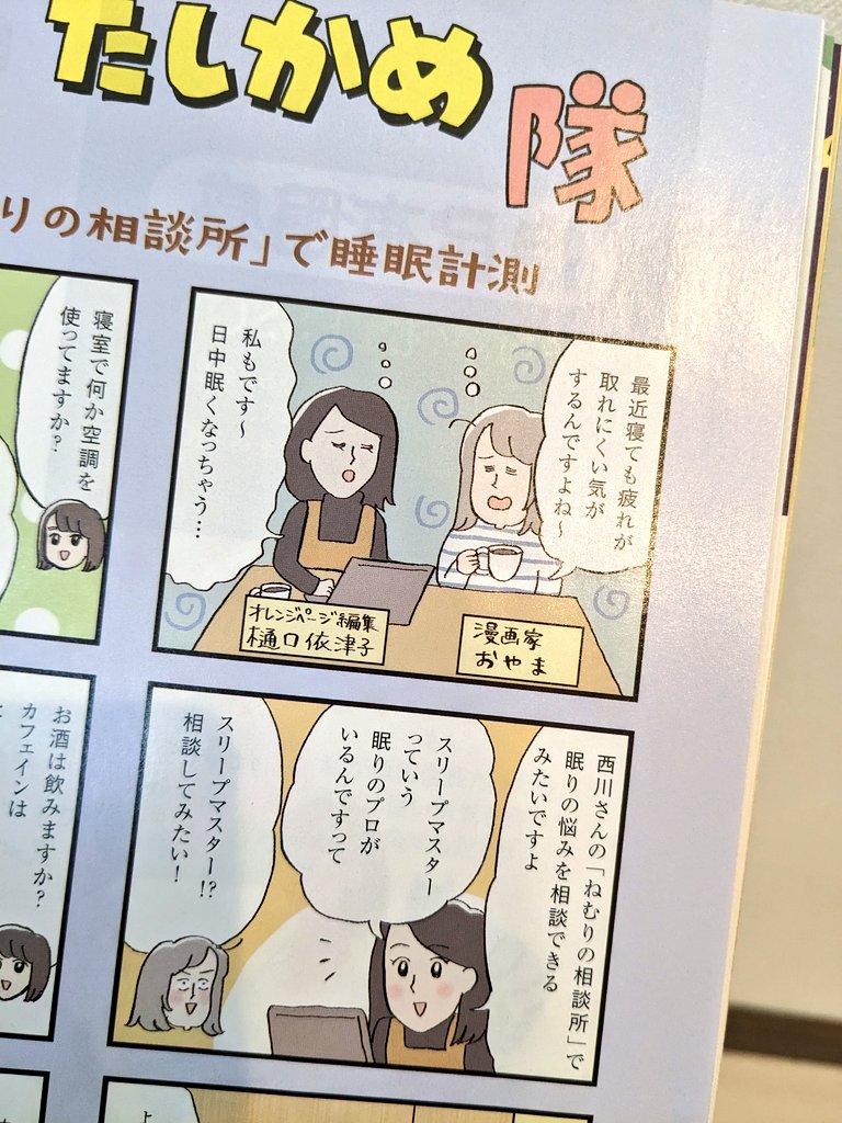 【お仕事】 オレンジページ5/2号「そこが知り隊・たしかめ隊」レポ漫画描きました!西川さんの「ねむりの相談所」で睡眠の悩みを相談してきました🌃
