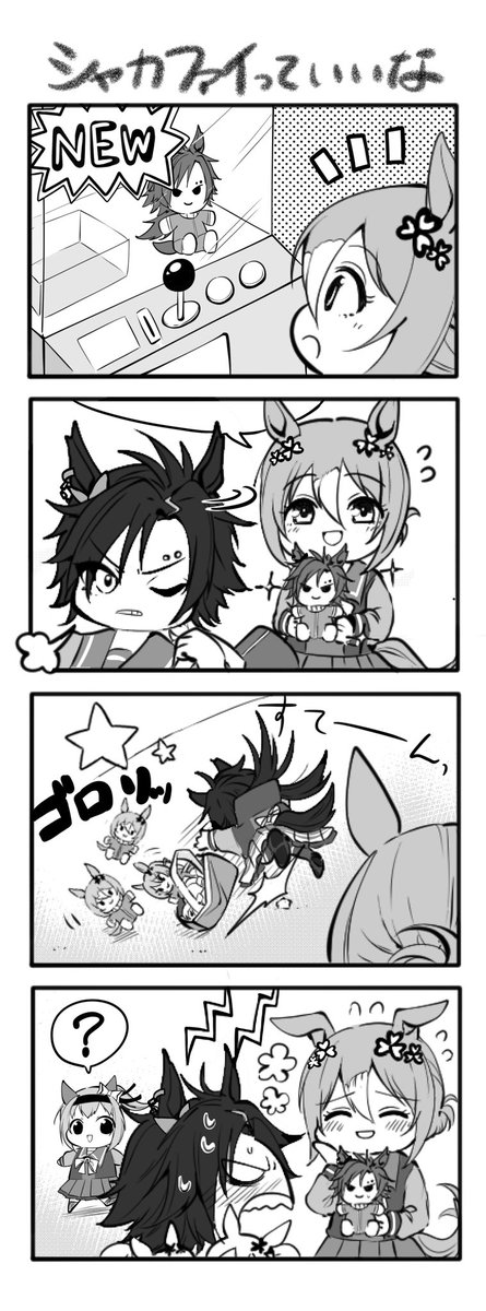 突発シャカファイ落書き漫画 解像度をミスってたので線の雰囲気やら太さやらバラバラです… #エアシャカール #ファインモーション #ウマ娘