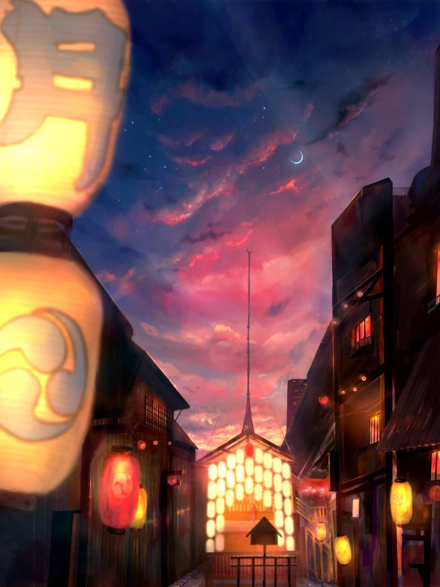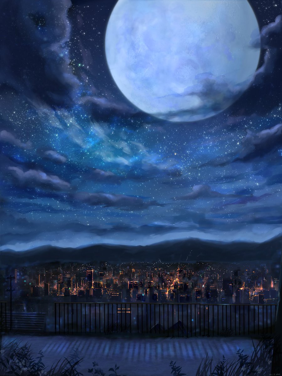 月と街明かり🌃 #絵描きさんと繋がりたい #イラスト #illustration