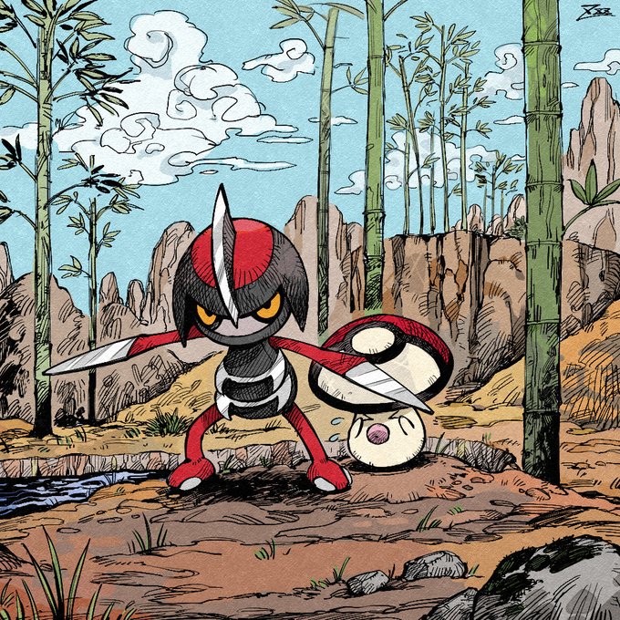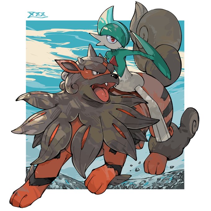 173 919 ヒスイウインディとエルレイド #ポケモンイラスト 23/07/28 22:51