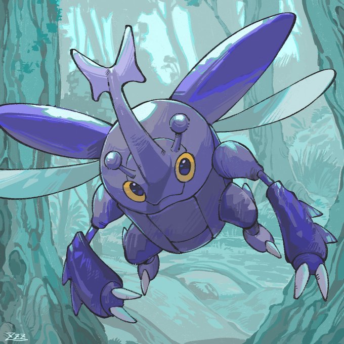 ゲノセクト(+友情出演:コフキムシ) +5分でした #ポケモン版深夜の真剣お絵描き60分一本勝負