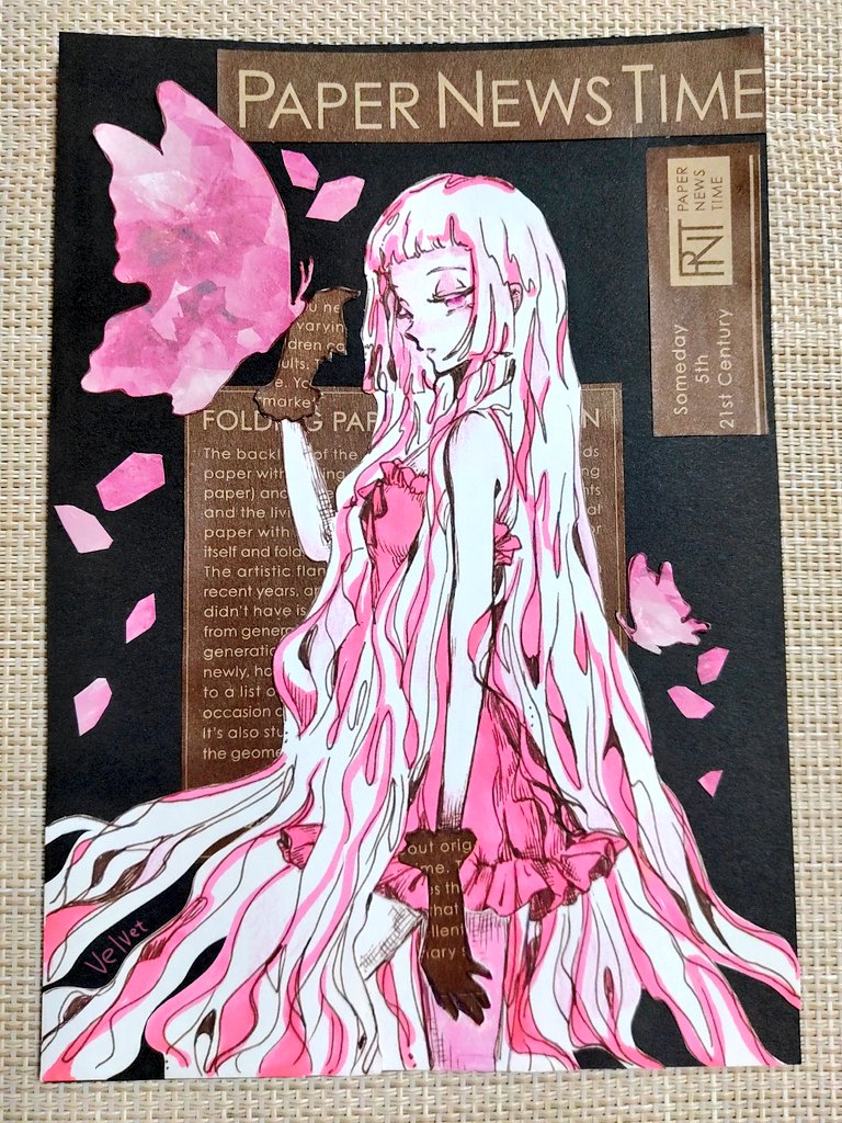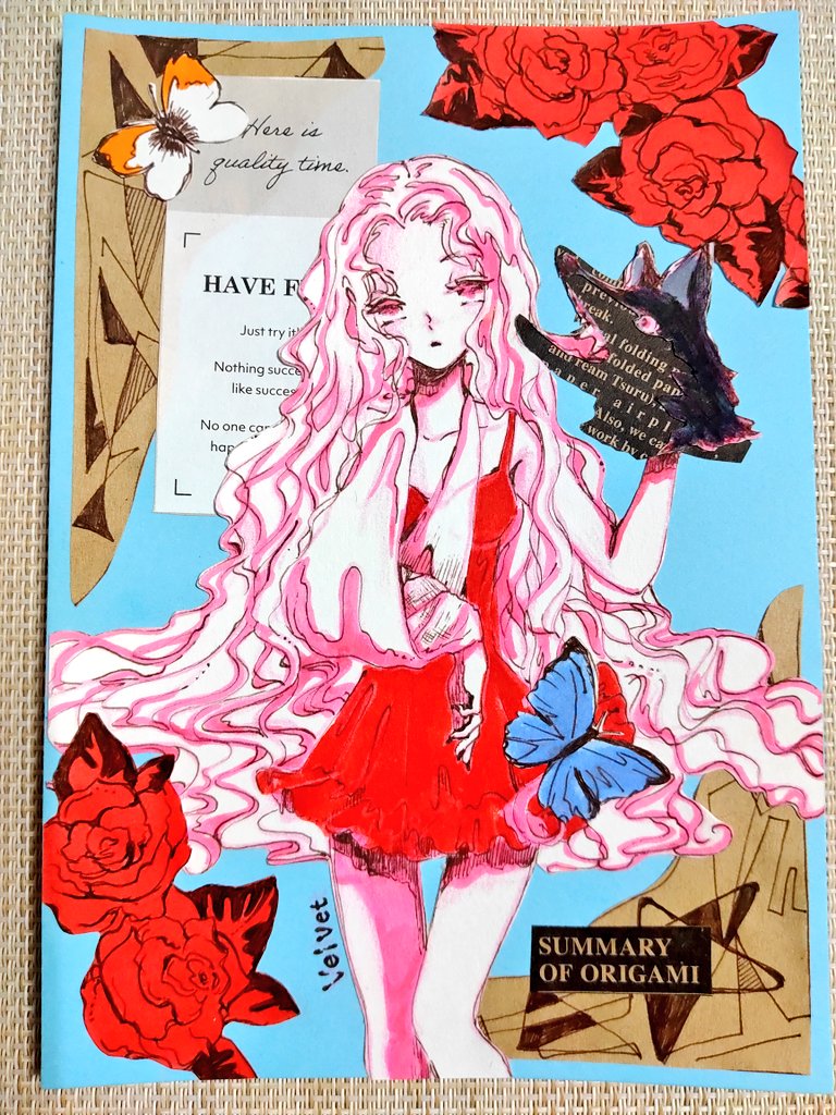 はじめまして🌛 おやすみヴェルベットです🌿 2つ目のアカウントでこの作品は女の子だけ自作のイラスト🖌️を使ったコラージュですが、らくがきとかもする予定なので興味ある方よろしくおねがいします😊🍀 #コラージュ #イラスト #折り紙